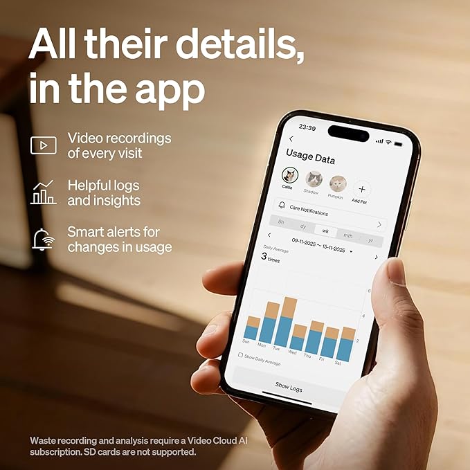 - Note: Livestreaming is included for free. However, video recording and AI analysis require a Video Cloud AI subscription. This cat litter box self cleaning does not support SD card storage. For kittens, nursing mothers, or cats under 2.2 lbs, please disable auto-clean and utilize the manual clean button.